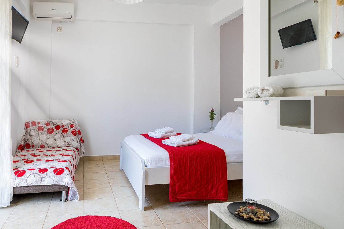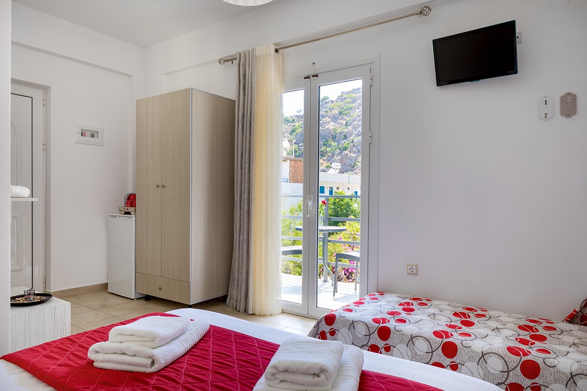 Decorated in bright pastel colors, the elegant John Akroyiali Double Rooms are equipped with two comfortable single beds that are joined together for maximum comfort, one single bed for an extra person, a modern bathroom and a range of luxurious amenities to make you feel like home. On the outside private furnished terrace, the guests enjoy their carefree vacation in the enchanting Loutro of Sfakia, Chania, Crete.