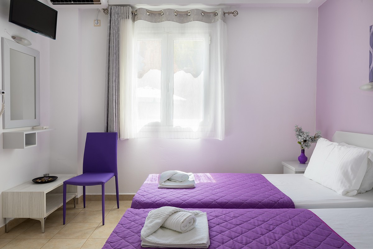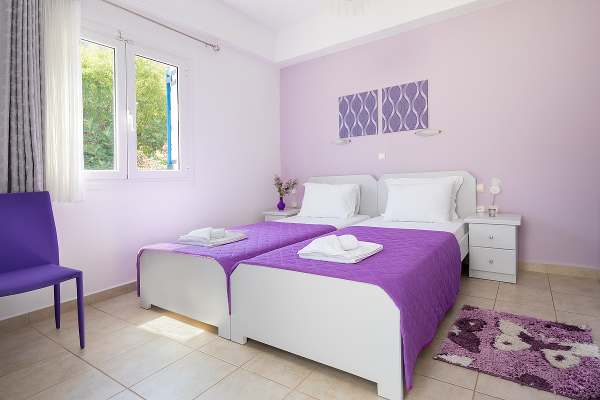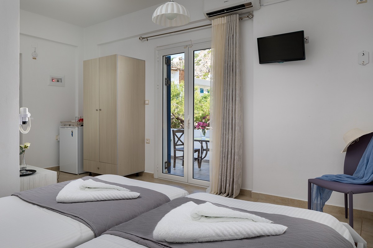Decorated in bright pastel colors, the elegant John Akroyiali Twin Rooms are equipped with two comfortable single beds that are joined together for maximum comfort, a modern bathroom and a range of luxurious amenities to make you feel like home. On the outside private furnished terrace, the guests enjoy their carefree vacation in the enchanting Loutro of Sfakia, Chania, Crete.